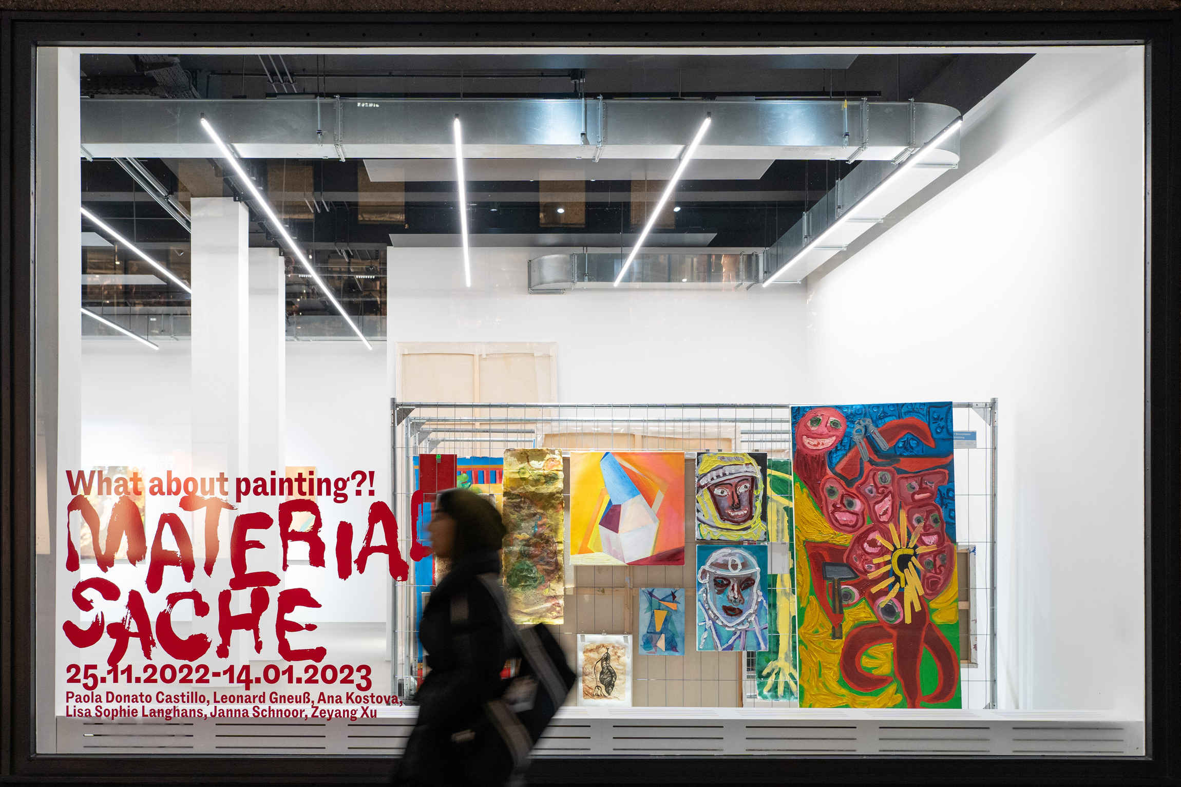 Design for the exhibition „Materialsache - What about Painting“ at spce. Photo 2 by Hans Noffke, photo 3 by Paul Dorobisz; 2022