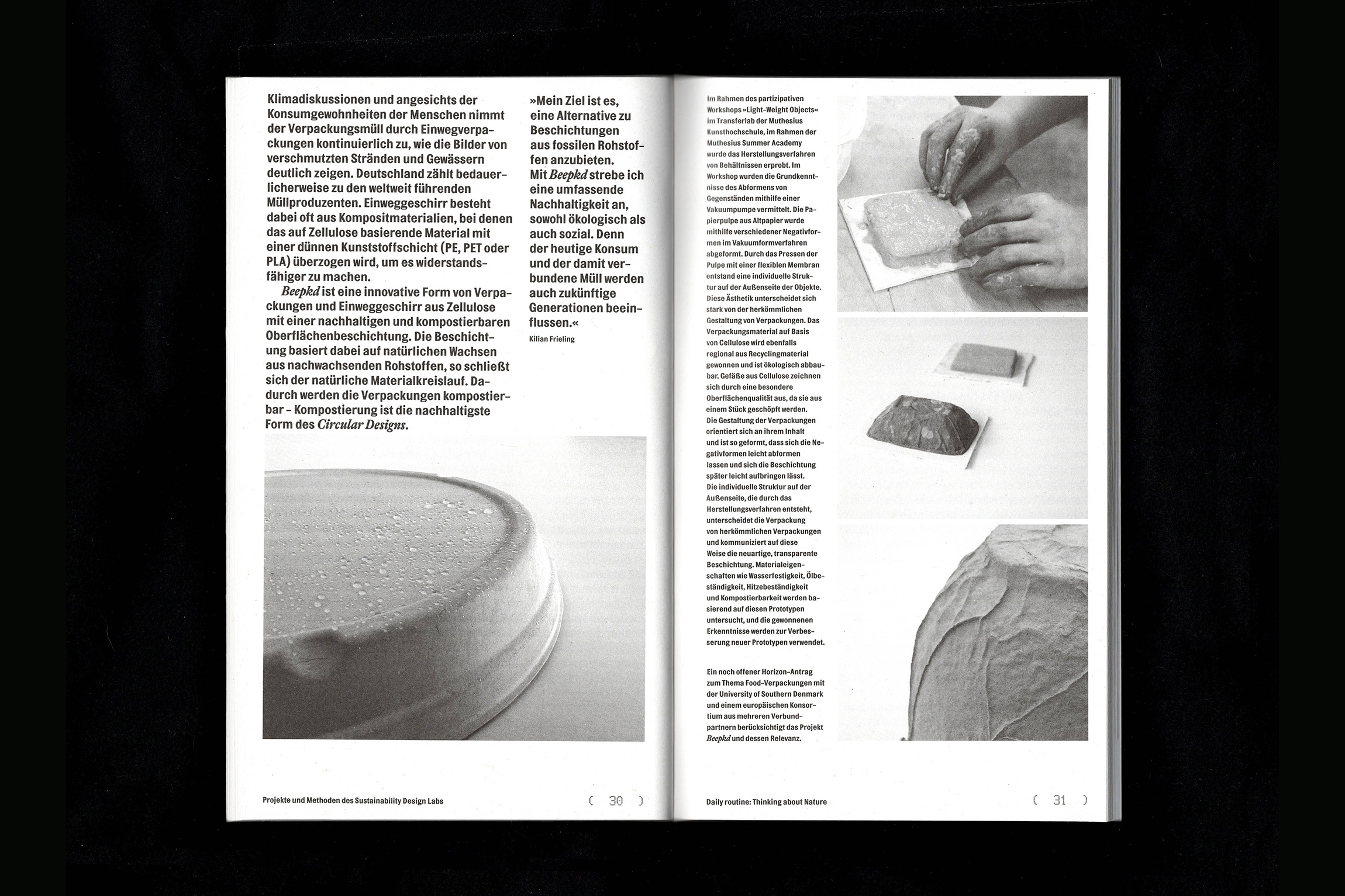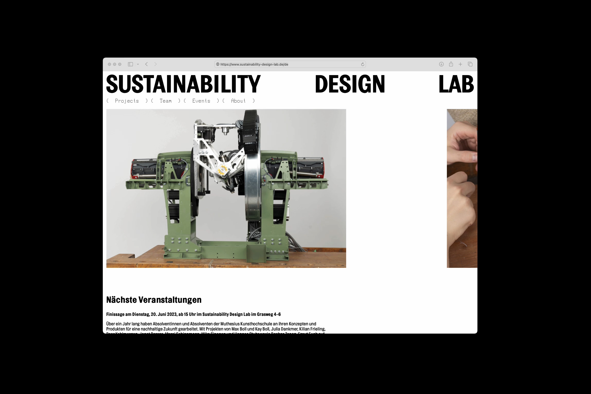 Visual identity for the Sustainability Design Lab. Including website, a publication, motion and printed matter; 2023
