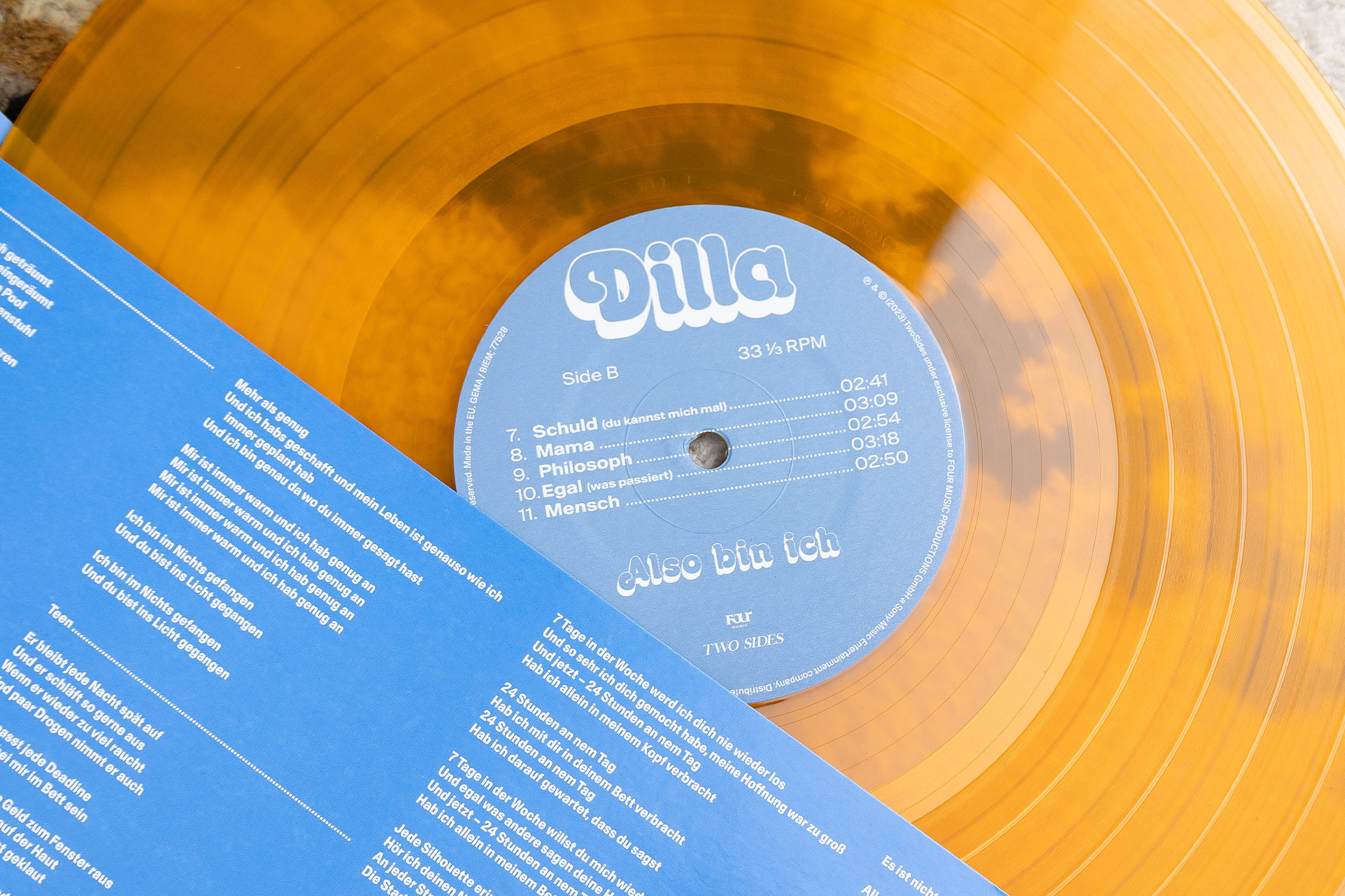 Visual identity for the album campaign “Also bin ich” by Dilla. Cover photo & first slide by Nirén Mahajan; 2023
