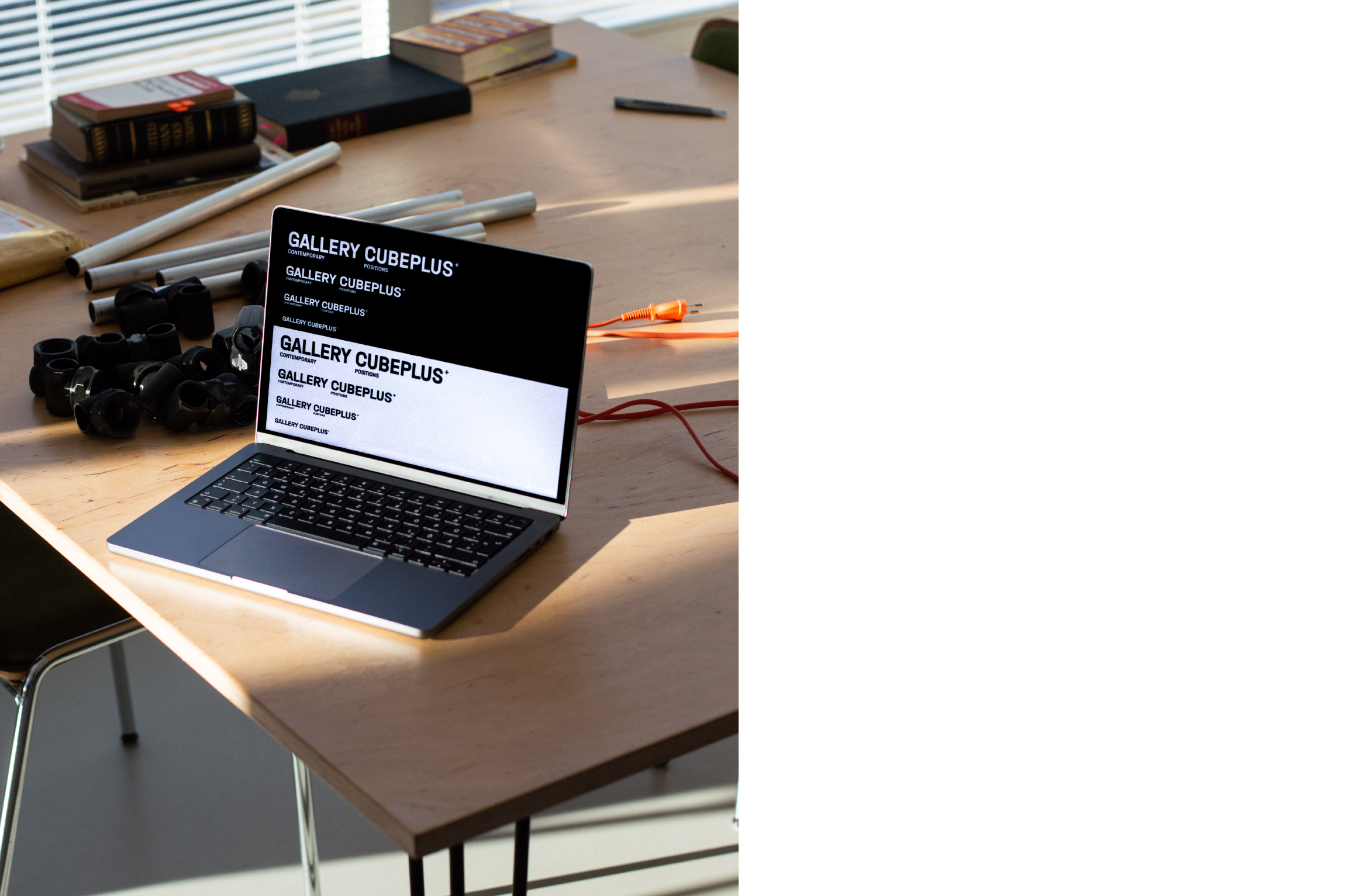 New logo for Gallery Cubeplus. First photo/artwork in Slide 3 by Anne Steinhagen, second photo by Nai Wei Tian/artworks by Melina Bigale & Liza Dieckwisch; 2022