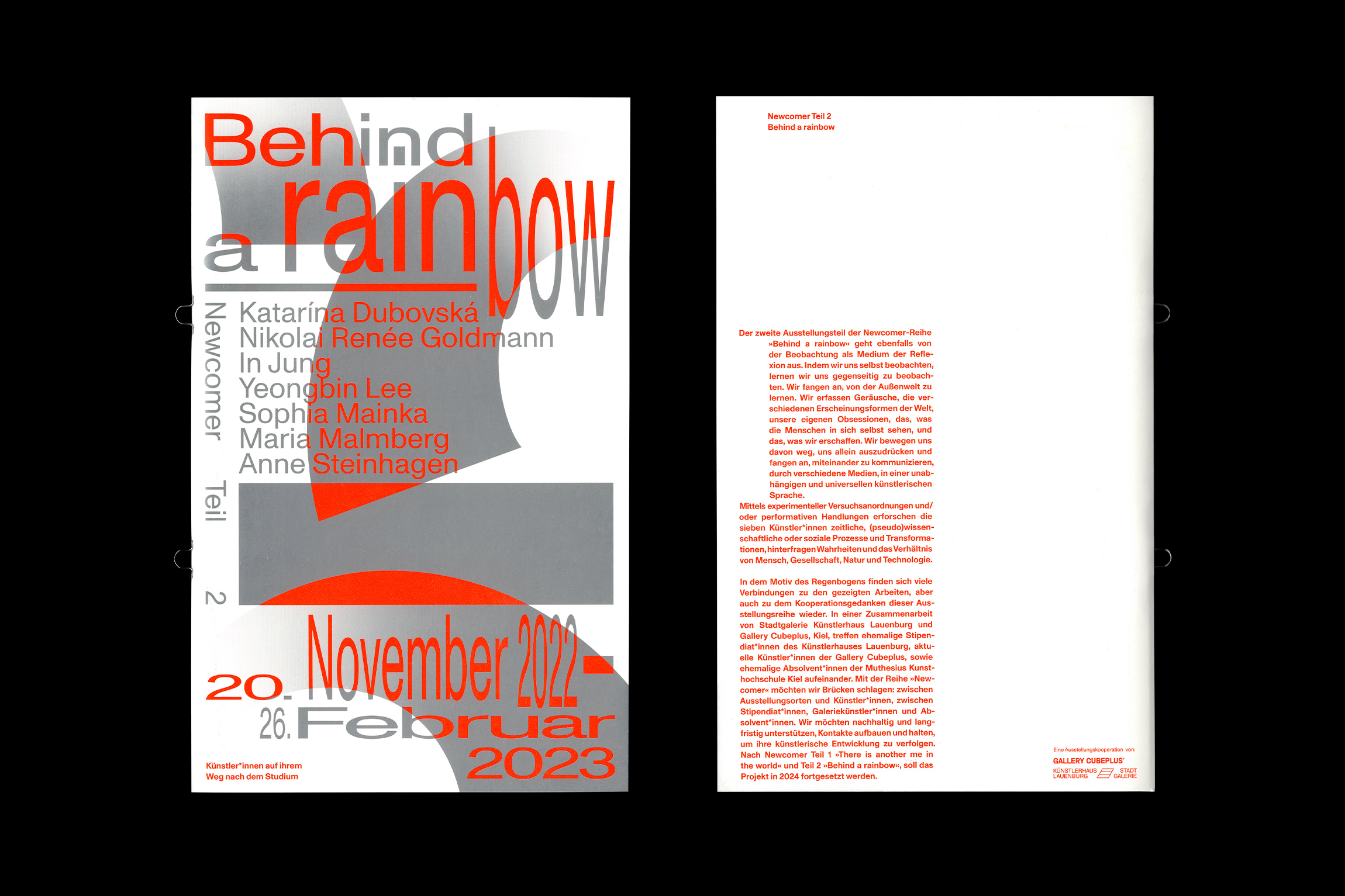 Graphic design of the group exhibition series “Newcomer” by Künstlerhaus Lauenburg in cooperation with Gallery CubePlus; 2022–2023