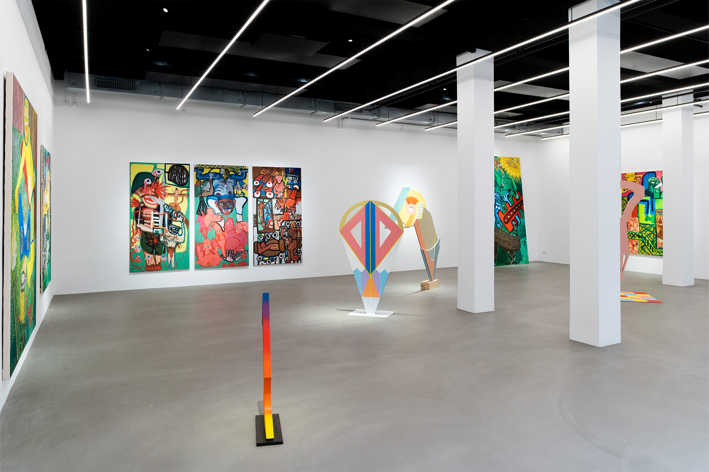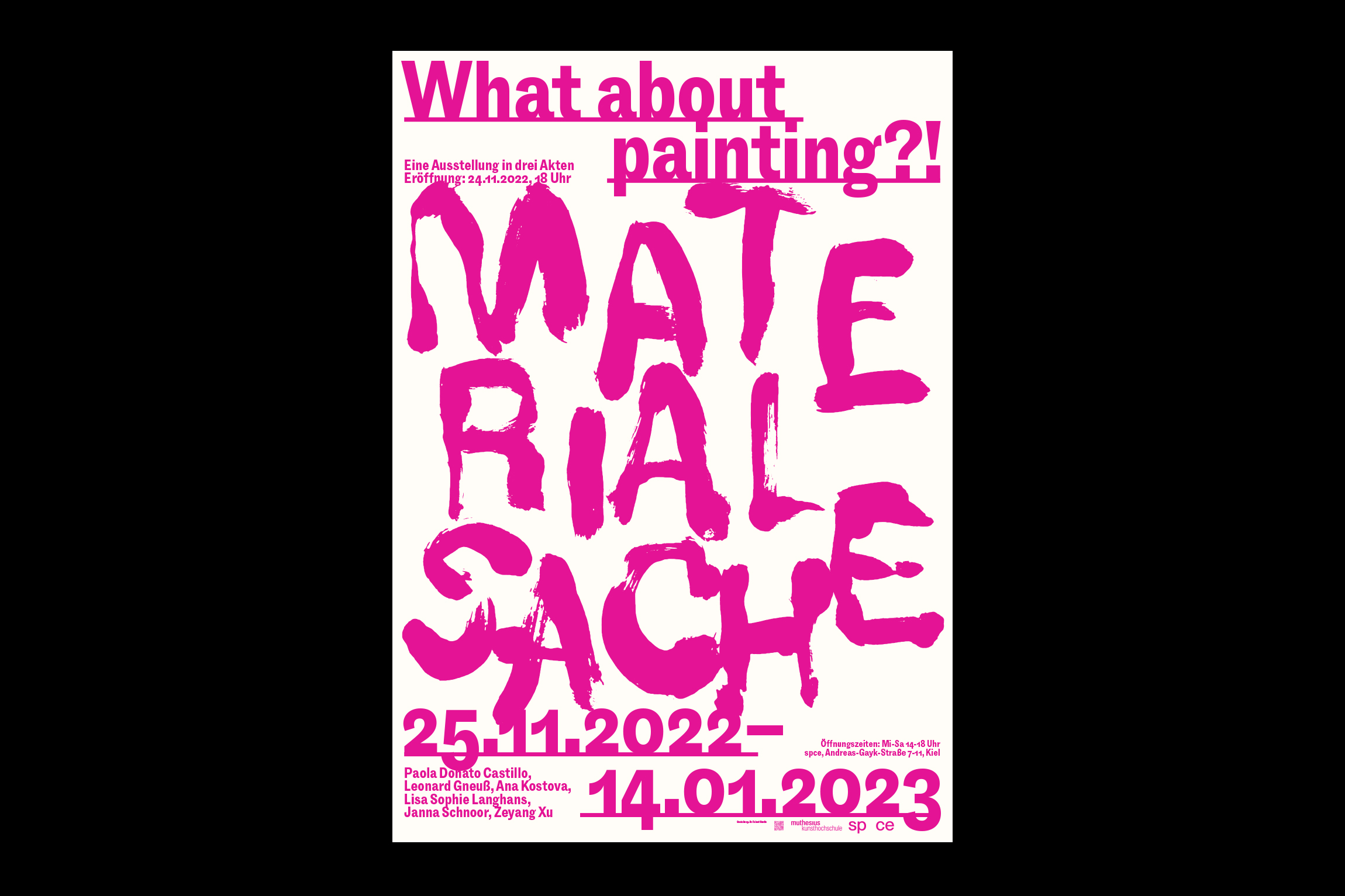 Design for the exhibition „Materialsache - What about Painting“ at spce. Photo 2 by Hans Noffke, photo 3 by Paul Dorobisz; 2022