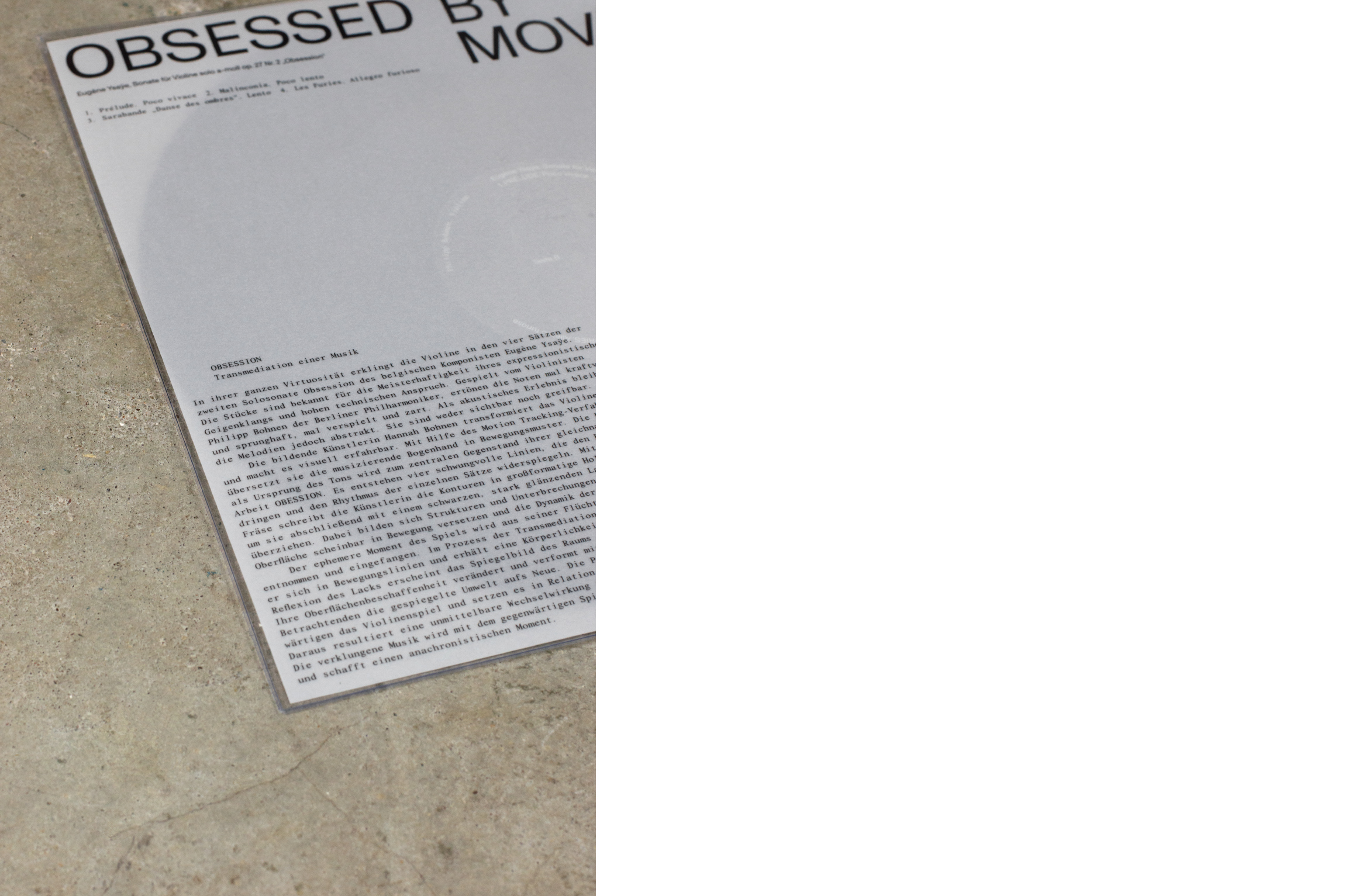 “Obsessed By Movement”; Vinyl artwork & business cards for Hannah Bohnen together with Kristin Rosch. Artistic Concept “Obsession” by Hannah Bohnen. Violin by Philipp Bohnen. Website by Artur Neufeld. Text by Peggy Schoenegge. 3D Model by Alex Williamson. Photo 7 by Edward Greiner.
